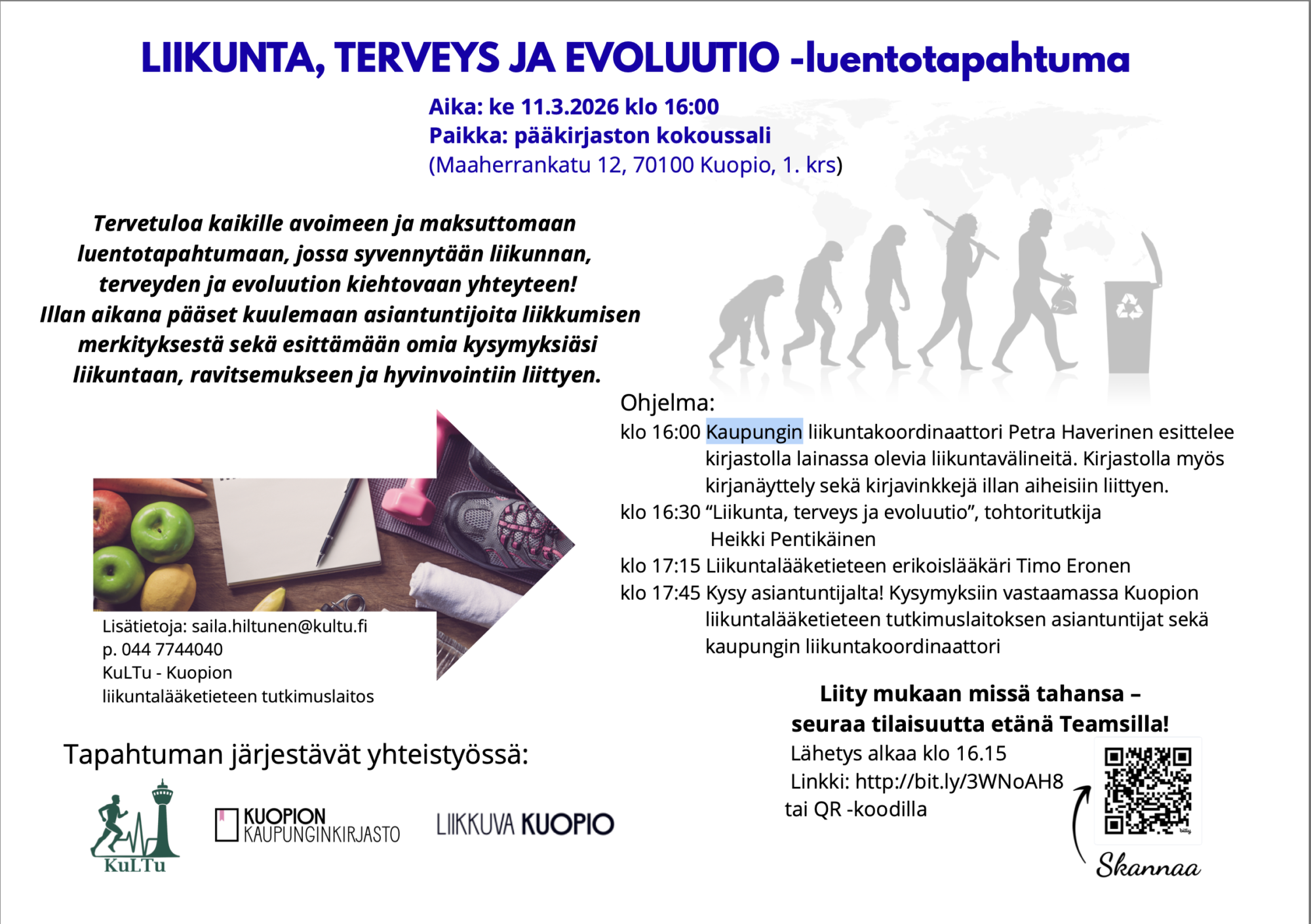 Tapahtuma järjestetään Kuopion kaupunginkirjastolla sekä etänä Teamsin kautta.