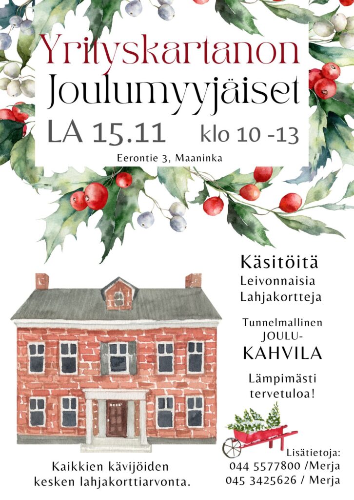 Lämpimästi tervetuloa Maaningan Yrityskartanolle joulumyyjäisiin la 15.11. klo 10-13.